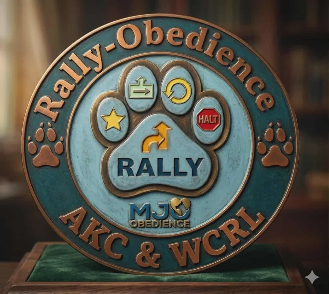 Rally obedience (also known as Rally or Rally-O) is a dog sport based on obedience. The competitors proceed around a course of designated stations with the dog in heel position. The course consists of 10 to 20 signs per course that instruct the team what to do. A fun way to continue your obedience that keeps things fresh and interesting to our dogs!